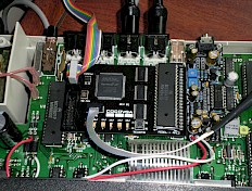 A rev B board CoCo 2 can be most easily identified from the outside by the channel select switch above the TV output and a vertically mounted modulator (metal box) which can easily be seen through the top grille, just to the right of center.